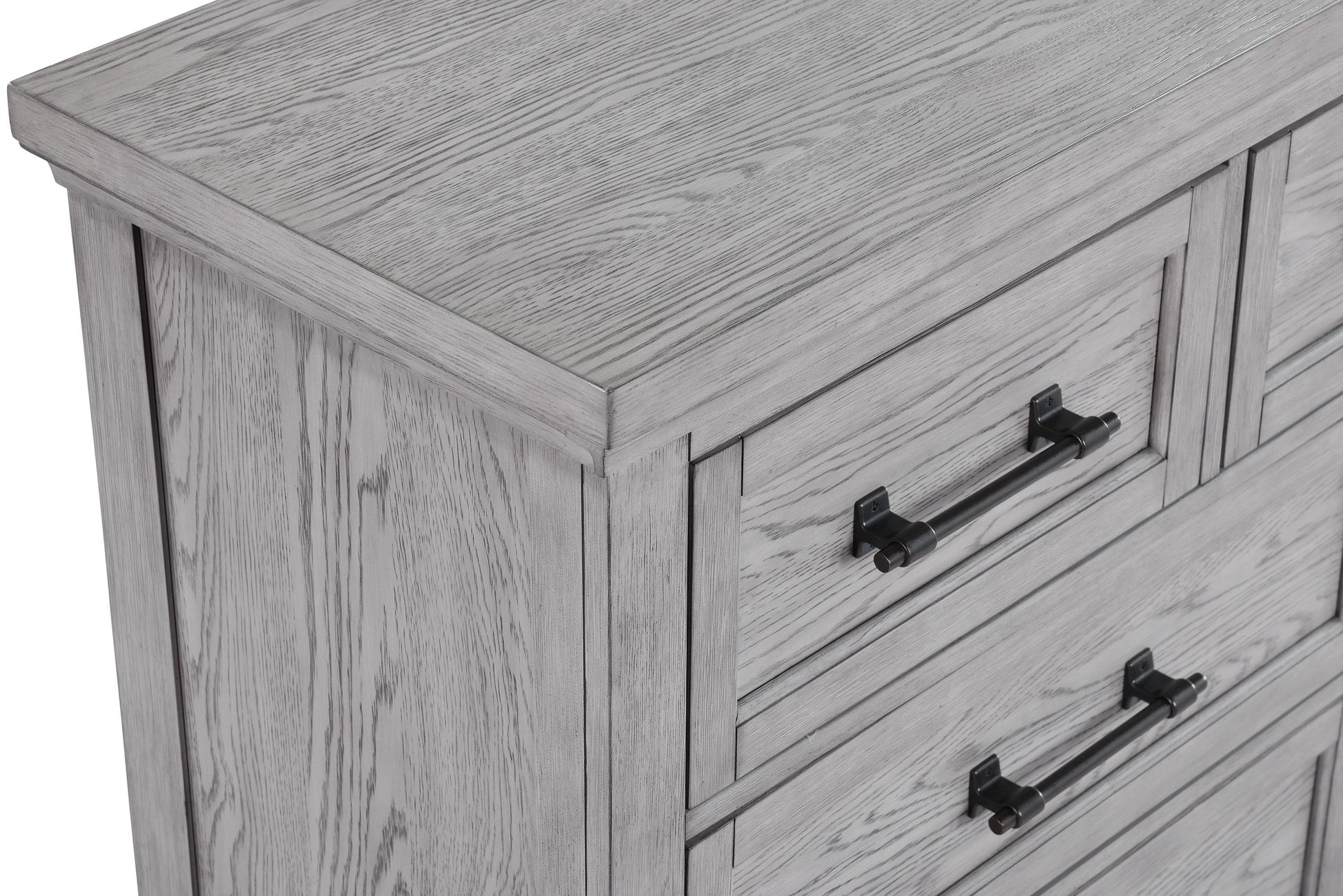 This bedroom suite offers a refreshing take on rustic charm, featuring a soft finish that highlights the natural wood grain. The sturdy bed stands as the centerpiece with its robust headboard and inviting design, while the accompanying pieces — a nightstand, dresser, and chest — provide ample storage, each fitted with understated hardware that accentuates the collection's country-inspired look.