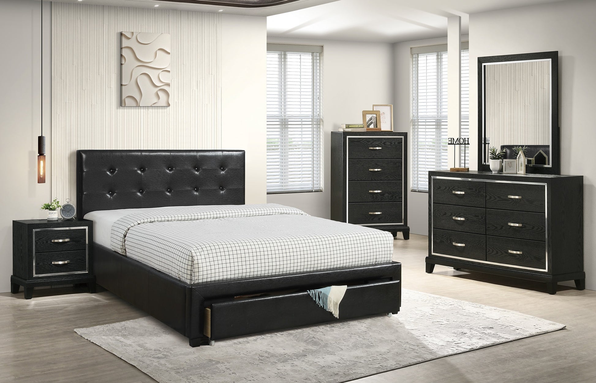 Upgrade your bedroom with this sleek and functional modern bedroom set, designed to bring both style and smart storage into your space. Finished in a rich black tone with subtle metallic accents, this set delivers a bold, contemporary look that pairs effortlessly with a wide range of décor styles.